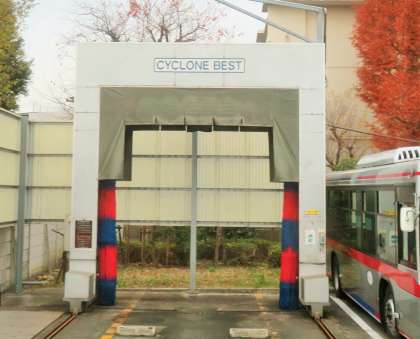 バスを洗車するときに、バス内からはどのように見えるのかを実際に見せていただきました。