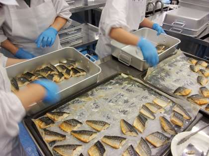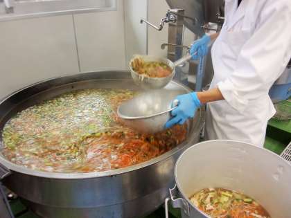 給食では、豚の背脂ではなく豚肉を使って作りました。