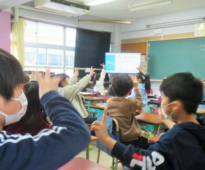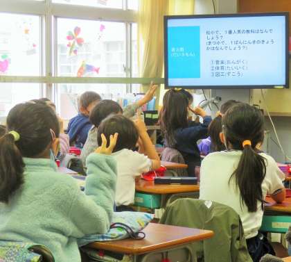 放送室から「一番人気の教科は何でしょうか?」「一番人気の動物は何でしょうか?」などのクイズがありました。教室は、ワクワク・ドキドキの空気に包まれています。