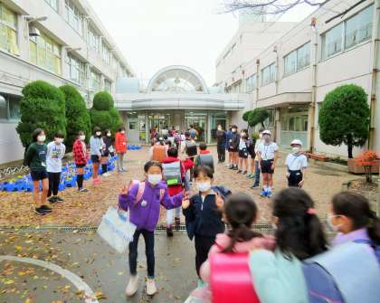 今日は「優郷の学び舎」あいさつ運動の4日目です。6年生の3,4組が担当で、正門と南門に分かれ、登校して来る子どもたちへ気持ちのよいあいさつを投げ掛けてくれました。