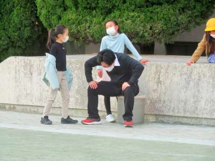走り回った先生は疲れています!