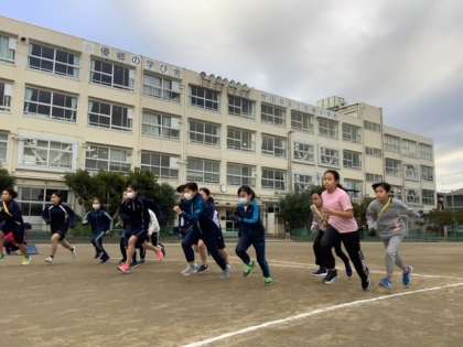 走る距離は、小学生が1km、中学生が2kmですが、小学生が中学生の胸を借りながら、半分の距離を全力で走っている姿はとっても素敵です。中学生のすごさを肌で感じながら練習に取り組んでいます。