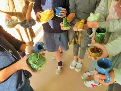 写真は、焼き物、乗り物クラブの様子です。