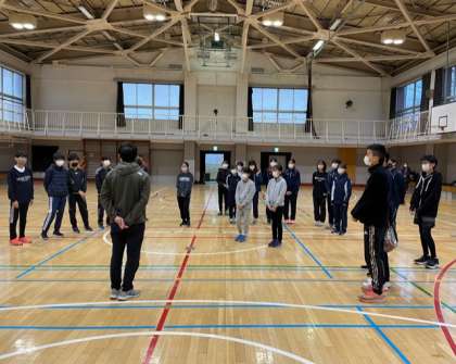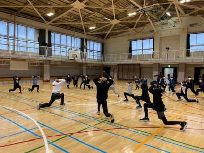 今日は、弦巻中学校の体育館を借用し軽く調整練習を行いました。日々、チームを陰から支えている本校の古川先生から熱いメッセージが伝えられました。目標は男女ともに3位以内です。早朝から真剣に頑張っている姿に、嬉しい気持ちでいっぱいです。
