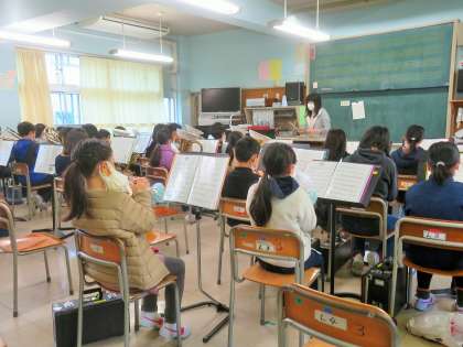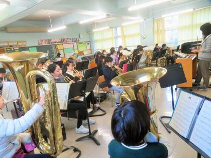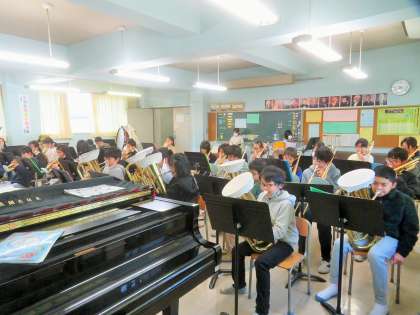 寒い朝が続いていますが、金管バンドの皆さんは、新たな目標である2月20日(日)実施予定の「東京都小学校管楽器演奏会」に向けて朝練習に取り組んでいます。
