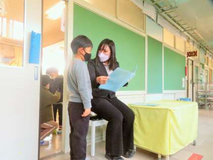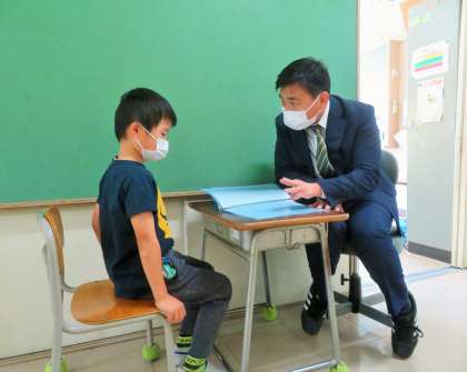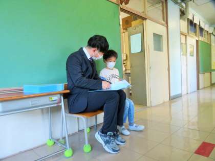 担任の先生から通知表が渡されました。子どもたちは、もうどきどきです。どのクラスも先生が子どもたち一人一人に丁寧に言葉を添えながら手渡しています。