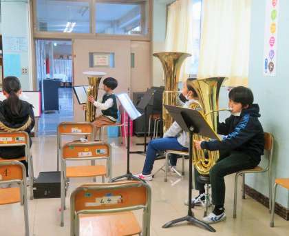3学期に入り寒い朝が続いていますが、金管バンドの皆さんは、新たな目標である2月20日(日)実施予定の「東京都小学校管楽器演奏会」に向けて朝練習に取り組んでいます。