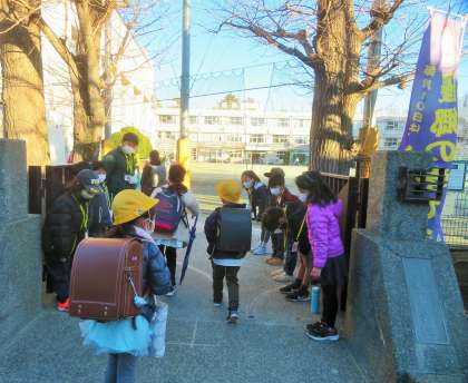 今朝は、1月の「優郷の学び舎」あいさつ運動2日目です。2年生が担当で、正門と南門に分かれ、登校して来る子どもたちへ気持ちのよいあいさつを投げ掛けてくれています。笑顔でとっても気持ちのよいあいさつでした!
