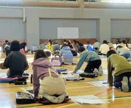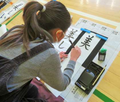 今日は4年生の席書会です。体育館でしっかりと心を落ち着け、一画一画ていねいに筆を進めていました。真剣な眼差しに、緊張感が伝わってきました。