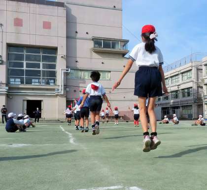 5年生をお手本として、3年生もリズムよく頑張っています!