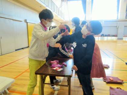 写真の病院では、お医者さんと患者さんのロールプレイを通して、体調のたずね方や体調の伝え方などを学びました。
