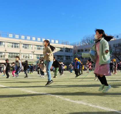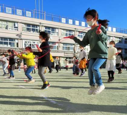 縄跳びは、リズム感や瞬発力、持久力など、スポーツにおける基礎的な能力が身に付く、理想的な運動ですので、これからも体育授業、休み時間などで取り組んでいきます。