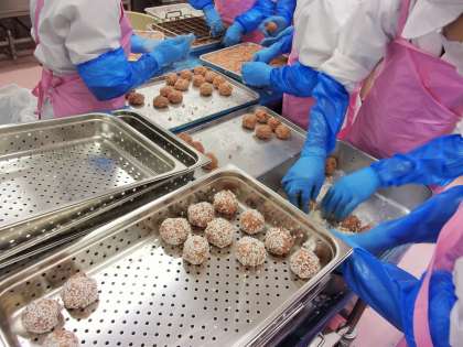 真珠蒸しは、肉団子のまわりにもち米をつけて蒸した料理です。