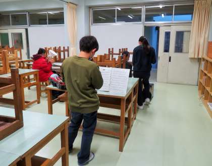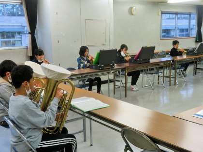 空き教室を活用し、さらに分散しての練習に取り組んでいます。