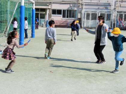 松丘小学校の休み時間は、子どもと先生の「共遊び」の姿が見られます。子どもたちだけで遊ぶのも楽しいですが、先生と一緒に遊ぶのは、もっと楽しい・・・!