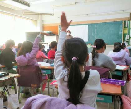 授業の様子をお届けします。オンライン学習をしている子どもたちの元気な声も聞こえてきて嬉しいです。