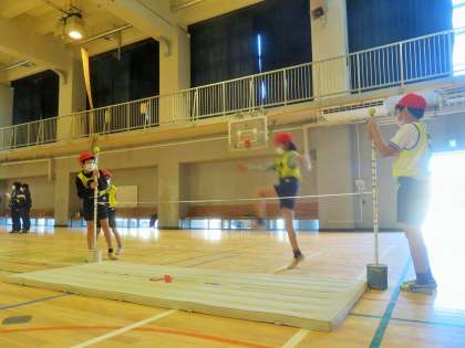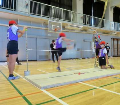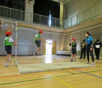 子どもたちは、自分や友達の動きの変化や伸びを見付けたり考えたりしながら、伸び伸びと「高跳び」を楽しんでいました。