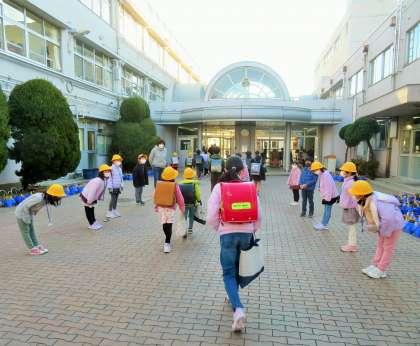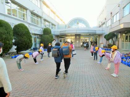 今日から2月の「優郷の学び舎」あいさつ運動がはじまり1年生が担当です。正門と南門に分かれ、登校して来る子どもたちへ気持ちのよいあいさつを投げ掛けてくれています。