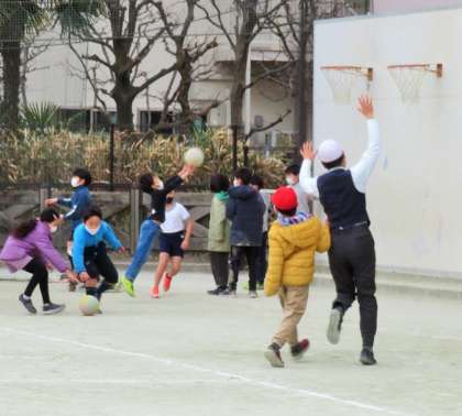 私は4年生と鬼ごっこですが、捕まってしまいました!