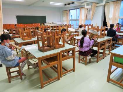 空き教室を活用し、さらに分散して練習に取り組んでいます。