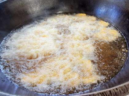 揚げたてのカツを熱々のたれに漬け、ごはんにのせます。