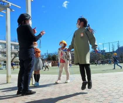 松丘小学校の特色の一つに、休み時間は校庭での「外遊び」があります。現在のコロナ渦では、校庭、屋上、体育館、教室と分散して遊んでいますが、私は、体力づくりの原点は「外遊び」と考えています。