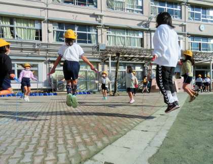 松丘小学校の特色の1つに、休み時間は校庭で遊ぶ「外遊び」、先生と一緒に遊ぶ「共遊び」の姿がたくさんあります。休み時間の校庭や体育館、屋上は、子どもたちの笑顔でいっぱいになります!