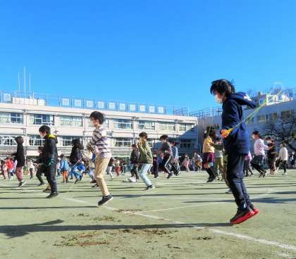 子どもたちと一緒に、先生もお手本となって跳びました!