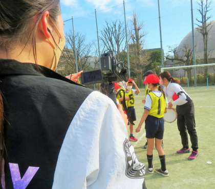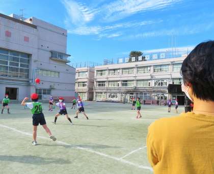 本校の校内研究授業の年間講師である、日本体育大学教授白旗和也先生とともに、授業改善と教師の指導力の向上を目指して研究が進められています。より良質な体育授業に向けて、4台のカメラが教師と子どもたちの動きを追っています。授業後には、次の授業に向けての「作戦タイム」が行われます。