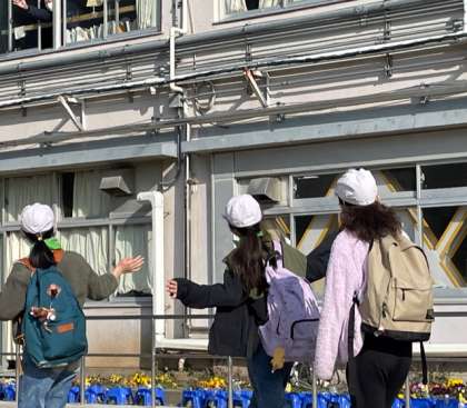 今日は5年生の社会科見学で「ソレイユの丘」です。5年生が出発するときに、2年生や4年生が「いってらっしゃーい!」と、温かく手を振りながら見送ってくれました。子どもたちの気持ちが表れていて、5年生も私たちも嬉しい気持ちでいっぱいになりました!