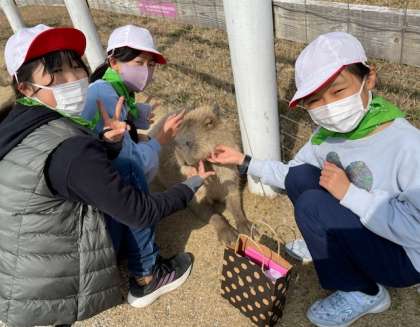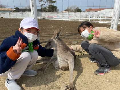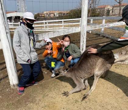 ふれあい動物村では、直接カピバラやカンガルーとふれあうことができます。