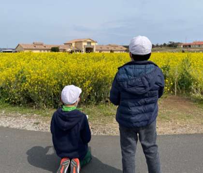 テーマパークで働く人々が工夫されている点を礼儀正しくインタビューしているグループや菜の花畑を見て、短歌を考えている子どもたちと出会いました!