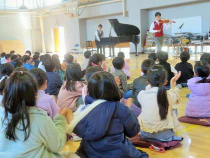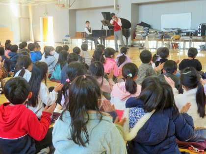 最後は「ミッキーマウスメドレー」です。そして、子どもたちのアンコールに応えてくれて、松丘小学校の「校歌」を演奏してくださいました。今回のコンサート鑑賞を通して音楽への興味・関心をより一層高めていってほしいと思っています。