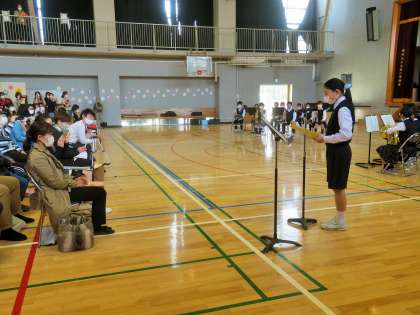 今日は、金管バンドの「お別れコンサート」です。金管バンドの子どもたちは、活動が制限される中でしたが、この日のために毎日の朝練習に一生懸命取り組み、聞いている人の心に響く素晴らしい演奏を披露しました。