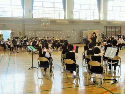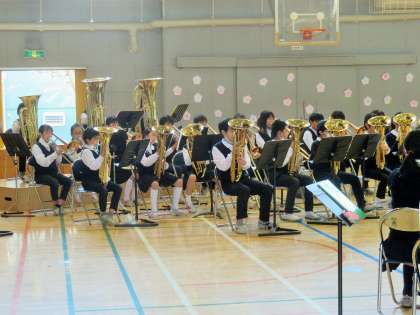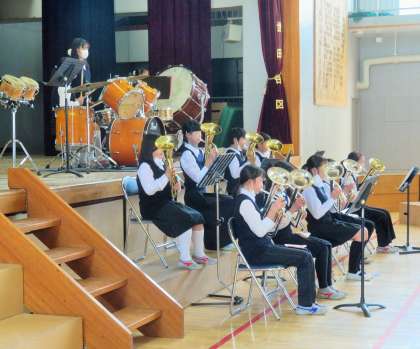 保護者の方々、応援に駆け付けた先生方を前に、金管バンドを通して育ってきた心の成長、伝統の重さなどを立派に発表しました。