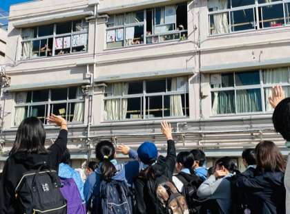 6年生が出発するときに、2年生や4年生、5年生が「いってらっしゃーい!」と、温かく手を振りながら見送ってくれました!