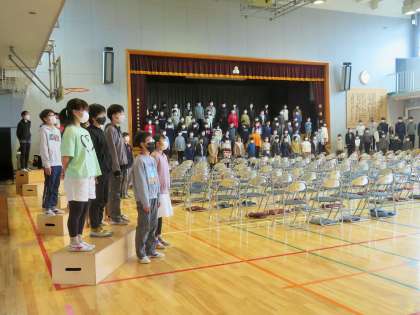 6年生は、昨日は社会科見学を思いっきり楽しんできました。今日は卒業式に向けての練習です。今年度の卒業式では、合唱曲「旅立ちの日に」と「校歌」を歌いたいと考えています。