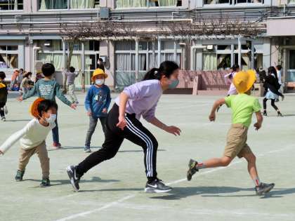 松丘小学校の休み時間は、子どもと先生の「共遊び」の姿が多く見られます。子どもたちだけで遊ぶのも楽しいですが、先生と一緒に遊ぶのは、もっと楽しい・・・!