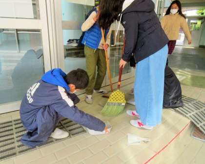 今日は6年生が、卒業に向けて学校をきれいにしようということで、校舎内外の清掃をしました。授業の妨げにならないようにと黙々と隅々のほこりを拭いたり掃いたりしました。とっても一生懸命動いていました。