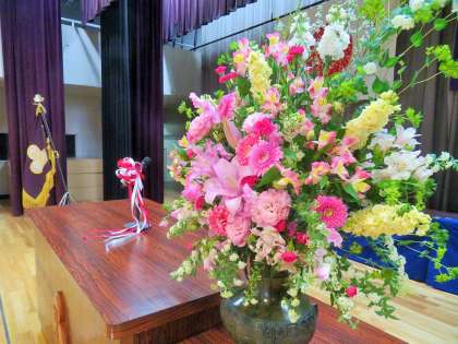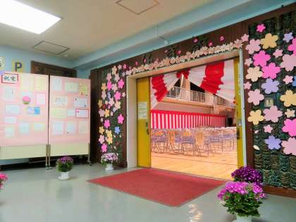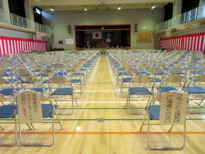 5年生の子どもたちと教職員が、心を込めて会場準備を行いました。このような状況だからこそ、子どもたちの思い出に残る卒業式にしたいと思っています。心温まるお祝いのメッセージボードが体育館入口にあります。