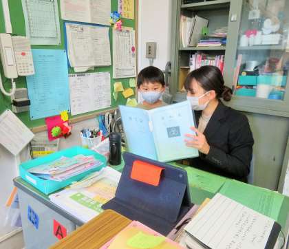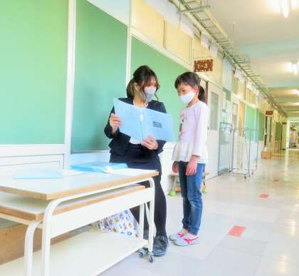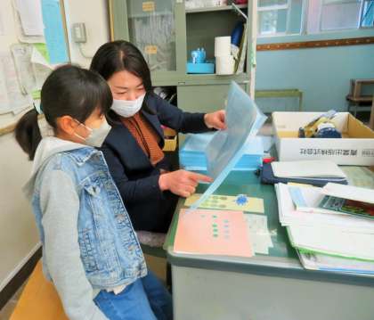 担任の先生から修了証が手渡されました。修了証とは、その学年の学習すべきことを修了したことを証明するものです。担任の先生が教室や廊下で、一人一人に言葉を添えながら渡しています。