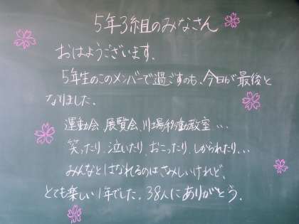 3/24 黒板には温かいメッセージが・・・4