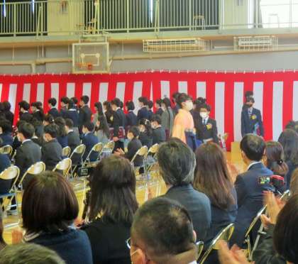卒業生の退場です。これまでの感謝の気持ちを込めて、一人一人が胸を張って退場しました。