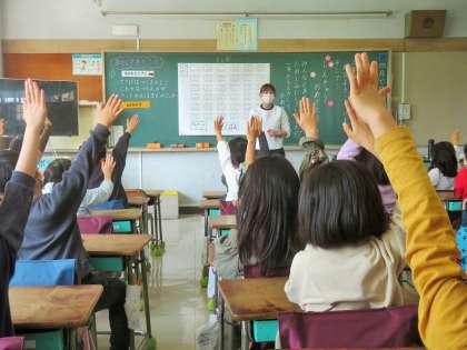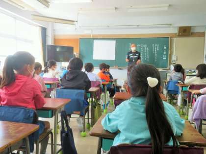 今日は、各クラスで担任の先生や子どもたちの自己紹介からスタートです。好きな食べ物、好きな勉強や運動、今年の目標などを一人ひとりがしっかりと発表しました。発表した友達に、互いに大きな拍手を送っていました。