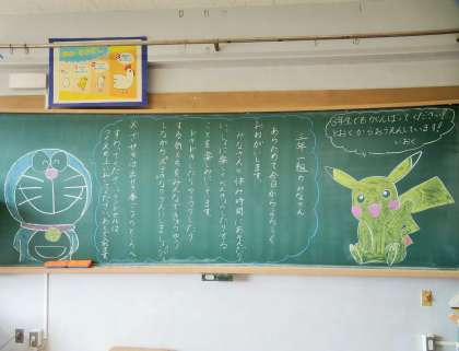 4/7 黒板には温かいメッセージが・・・2