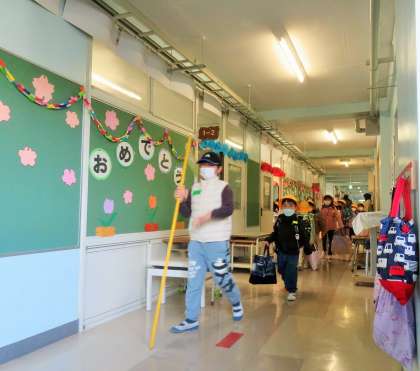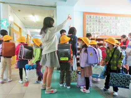 今日も早めに登校した6年生が、1年生の昇降口や教室で、登校してきた1年生のサポートをしています。