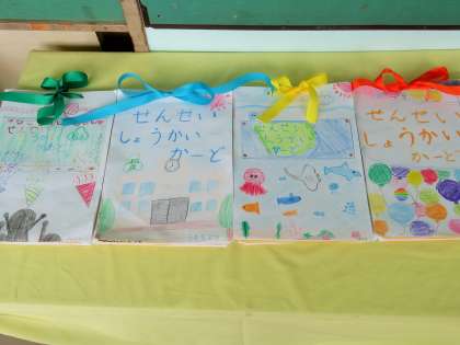 「1年生を迎える会」において、プレゼントする作品が飾られていました。