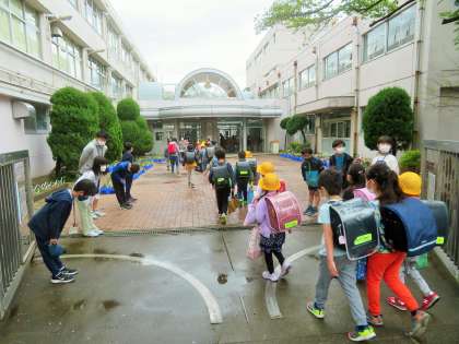 今日は「優郷の学び舎」あいさつ運動の3日目、最終日です。5年生が担当で、正門と南門に分かれ、登校して来る子どもたちへ気持ちのよいあいさつを投げ掛けてくれました。