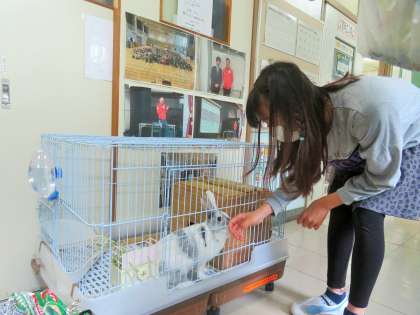 ウサギがいつも健康で、人気者でいられるその陰には飼育委員さんの日々の努力、活動があるのです。飼育委員さんいつもありがとう。