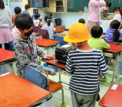 1年生が入学してから11日目を迎えました。わからないことがいっぱいだった1年生も、だいぶ小学校の生活に慣れてきています。そこには、やさしい6年生の姿がたくさんあり1年生の不安をやさしくフォローしています。
